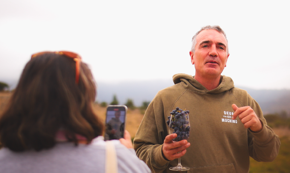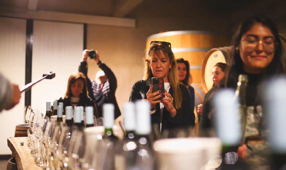 Visita guiada por la bodega conociendo el proceso de producción de vinos premium, recorrido por la sala de barricas, finalizando con un menú de tres tiempos con dos vinos íconos y un vino Grand Vin en maridaje.